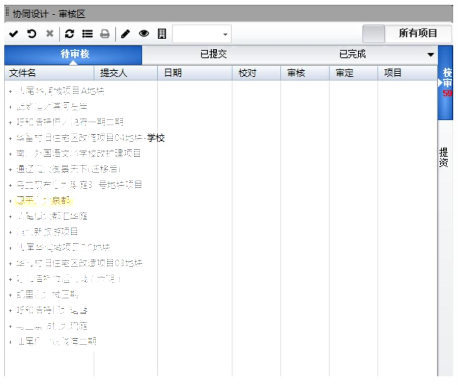 1、設計院統(tǒng)一的工作平臺:設計區(qū)、提資區(qū)、公共區(qū)