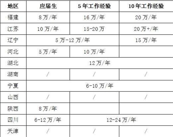 2、薪酬分布從BIM人才薪酬情況看,11個省市的薪酬水平也有較大的差異,與當?shù)亟?jīng)濟發(fā)展水平和建筑業(yè)發(fā)達水平息息相關(guān)。江蘇、四川和福建省的BIM人才薪酬無論是應(yīng)屆生、具有5年工作經(jīng)驗、還是具有10年工作經(jīng)驗的,均處于被調(diào)研省市的前列。