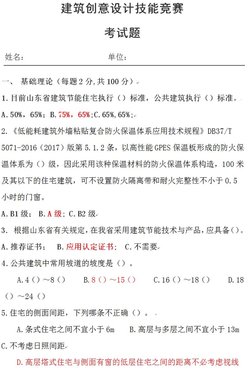 基礎(chǔ)理論:建筑創(chuàng)意設(shè)計(jì)技能競賽考試題